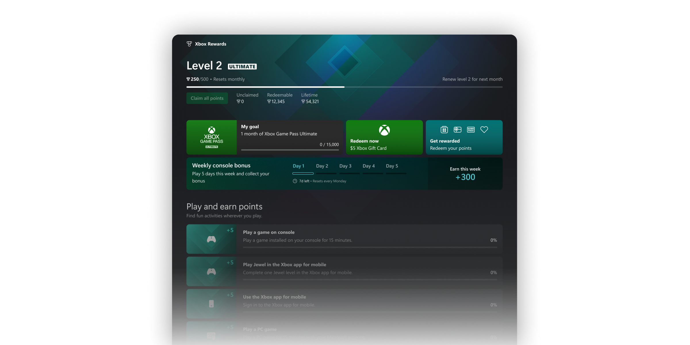Primary designer on the Xbox Loyalty team focused on aligning and redesigning the loyalty and rewards experience across the Xbox ecosystem (console, desktop, handheld, and mobile).