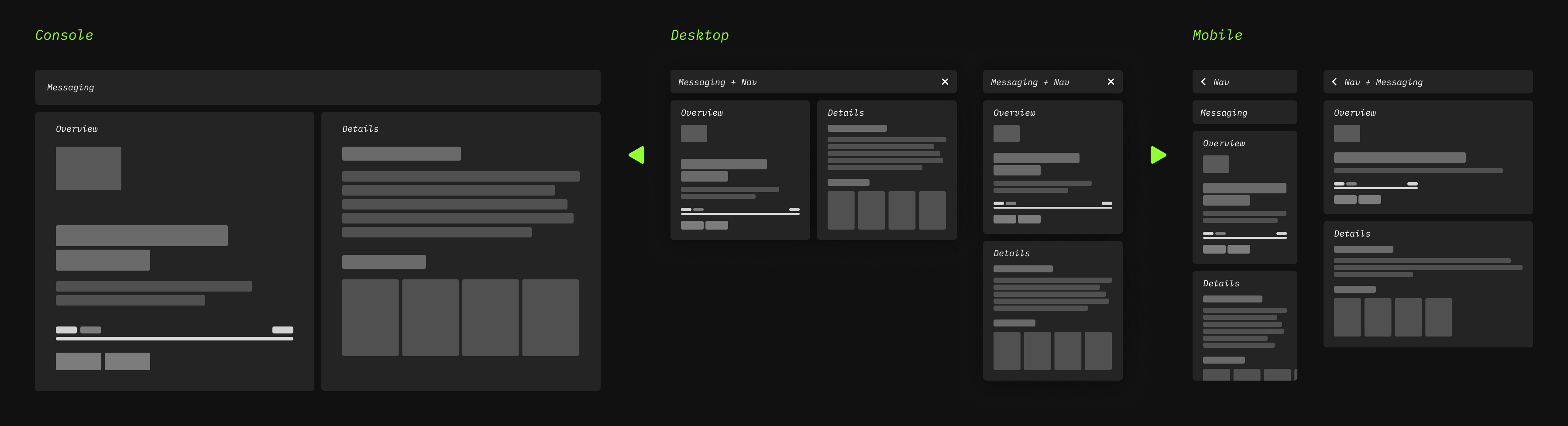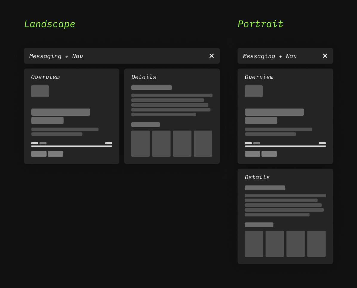 The main layout is structured around 3 content areas that are re-arranged depending on the device form factor. This layout structure was designed to support: 1) console, 2) desktop, 3) handheld, and 4) mobile. As for web, this has been out of scope, but the design system can support web experiences.