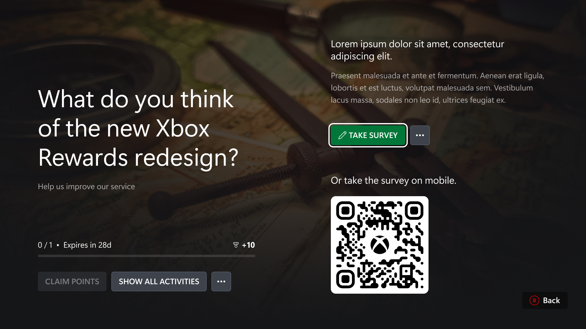 Content is king. Coming from a content and monetization background, I drew up some new quests to replace the ones that were offered by Microsoft Rewards on the Xbox to add more types of engaging content. Additionally, the plan was to create a new revenue stream by offering an alternate market research venue via sponsorships.