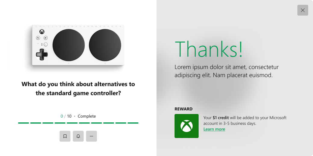 Secondarily, this allows Rewards content to live outside of its domain, meaning other parts of the Xbox ecosystem could invoke Rewards content in their domains without taking out and disrupting the user's current experience.