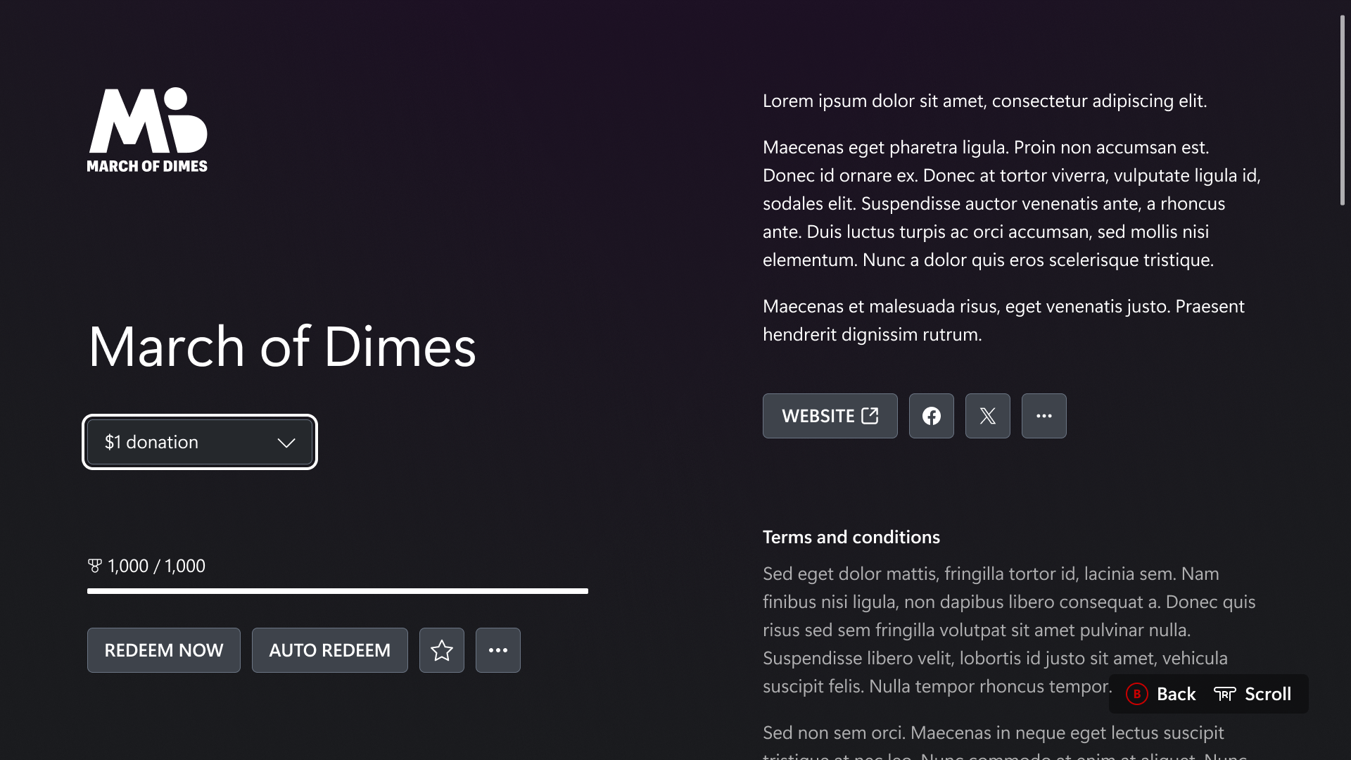 For the most part, the Rewards details pages are designed around the use of modal overlays.