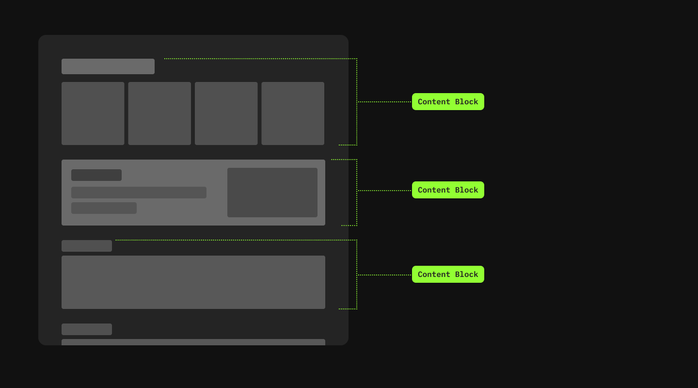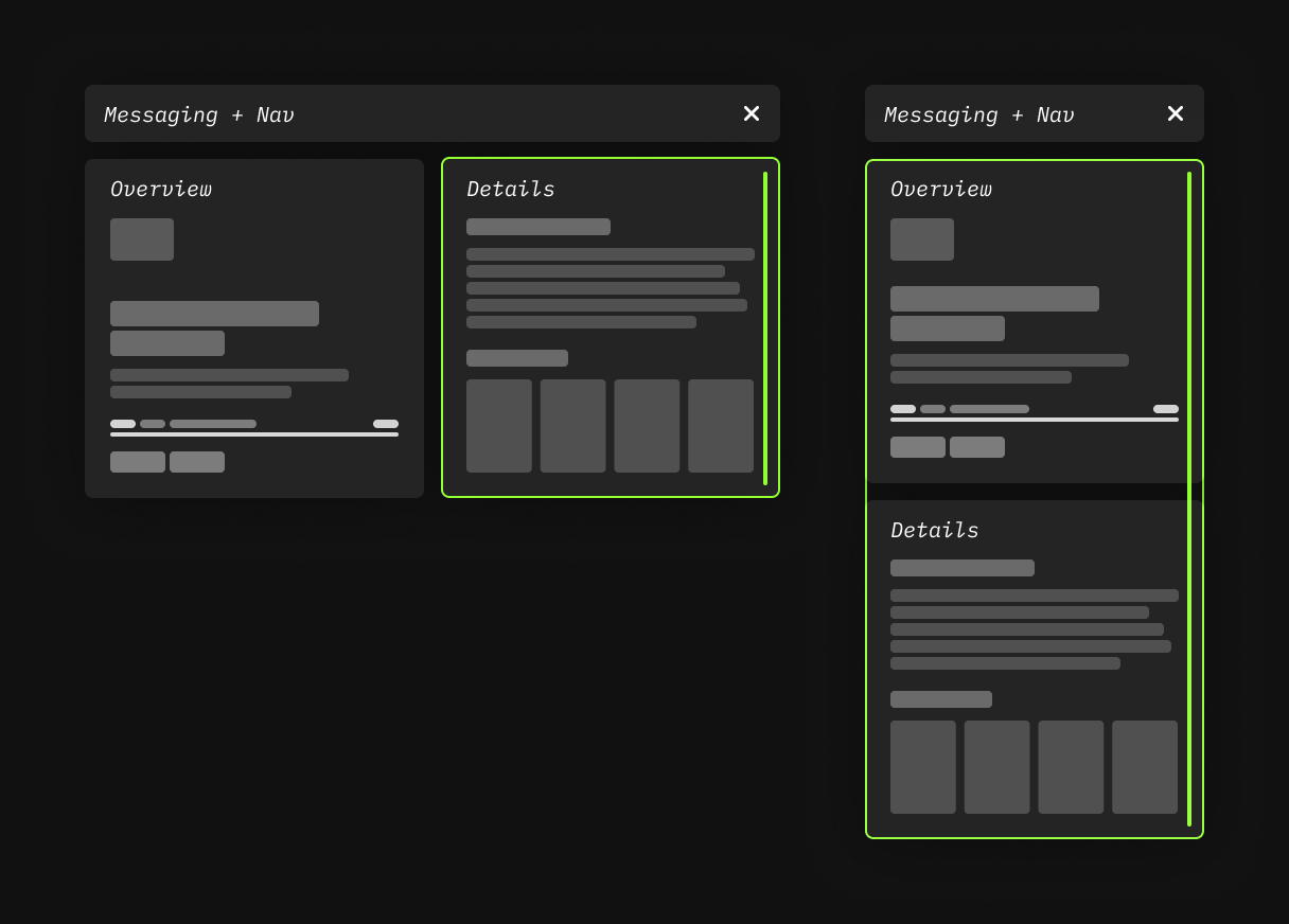 An overview is not always enough. This block was designed to contain smaller content blocks that stack and can be specifically ordered or conditionally based on the user's journey.