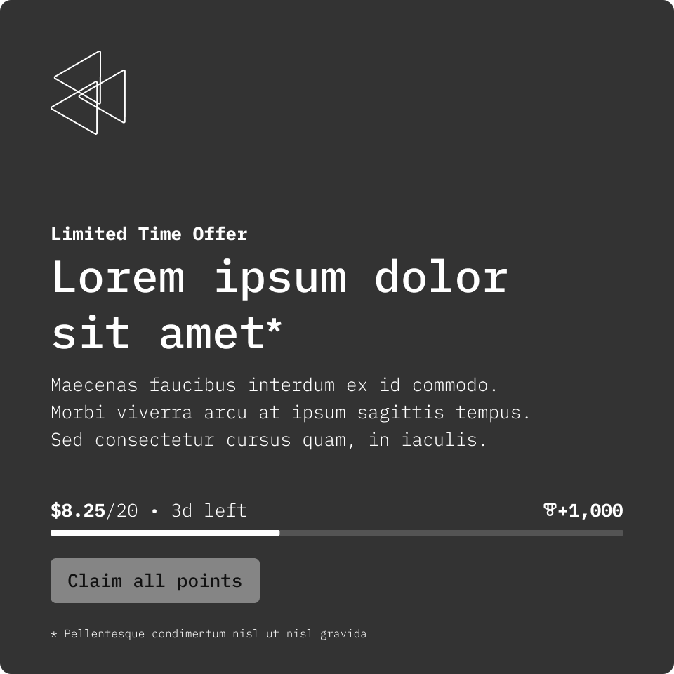 This gives the user a quick summary of their progress for a quest/redeemable and any key tasks that may require their attention. It was designed to be scalable in terms of allowing for supporting different types of tasks that require tracking progression.