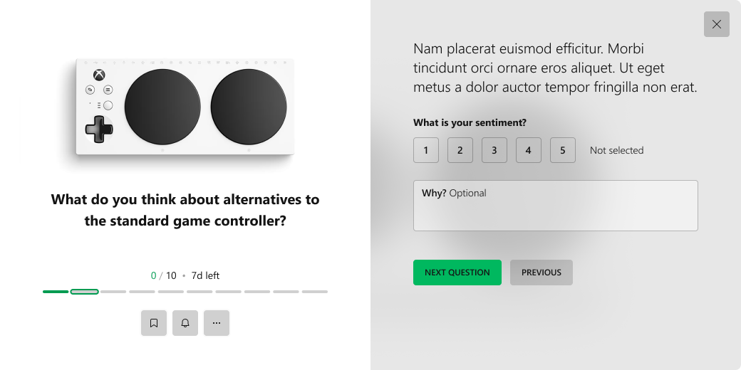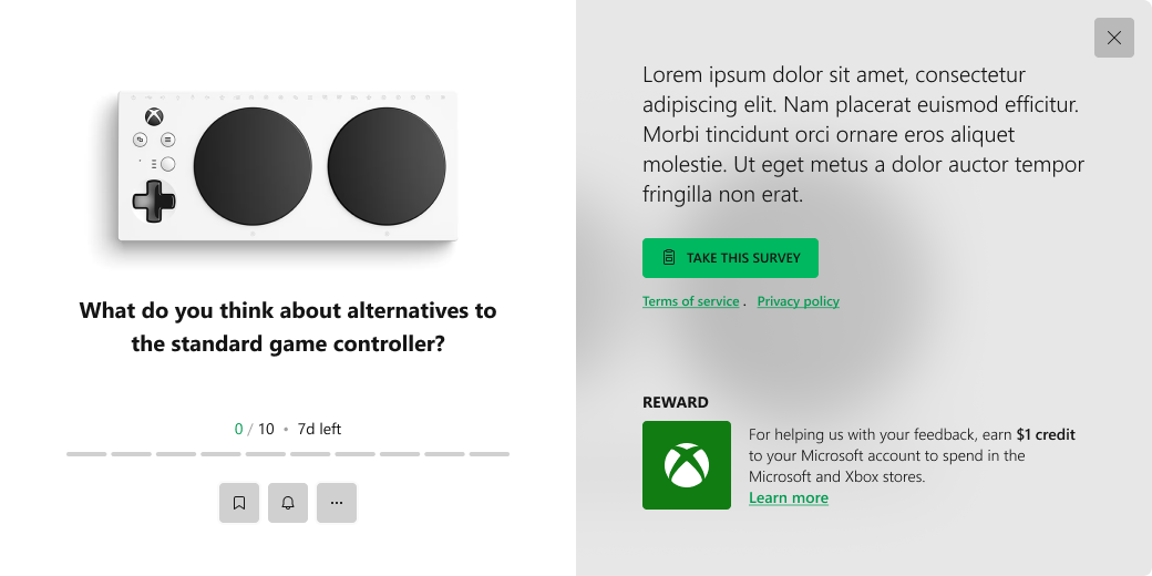 Content is king. Coming from a content and monetization background, I drew up some new quests to replace the ones that were offered by Microsoft Rewards on the Xbox to add more types of engaging content. Additionally, the plan was to create a new revenue stream by offering an alternate market research venue via sponsorships.