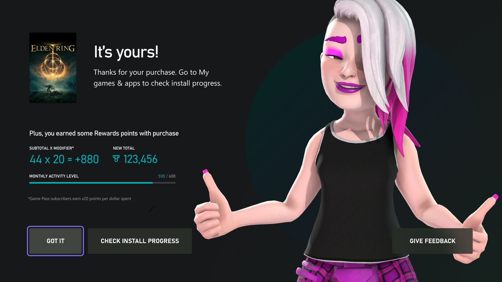 If you can't tell, I really liked the latest iteration of Xbox Avatars. Unfortunately it's being deprecated which made me sad. I had originally wanted to integrate personalization features using avatars as a way to add more flair to the experience by making the user feel more a part of the Rewards experience and a way to siphon points by using a popular feature in massively multiplayer online games———character creation aka passion for fashion 👠